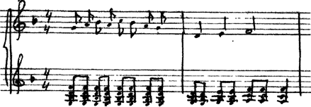 Но этим не исчерпываются преимущества специфически фортепианных «каналов» в музыкально-ритмическом воспитании. Последнее, как известно, предъявляет своеобразные и обычно весьма сложные требования к обучающемуся в связи с явлениями полиритмии и полиметрии. Фортепиано — один из очень немногих инструментов, способных предоставить музыканту необходимый и богатый материал для соответствующей учебно-образовательной практики.