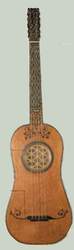 Конструкция гитар эпохи барокко как правило поддерживалась несколькими поперечными пружинами, розетка порою была очень изящной. Но в то время ещё не существовало стандартов, и размеры инструмента определялись по усмотрению мастера. Различия в диапазоне, т.е. длине открытых струн, иногда были значительными.