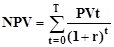 PVt – чистый (нетто) поток доходов в t‑ом году,