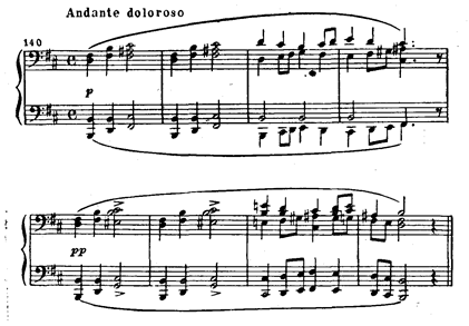 Контрастная тема средней части, напряженная, динамичная, соединяющая активные, энергичные интонации с элементами речитации, вносит нотки драматизма. После нее, в репризе, основная тема звучит тревожными возгласами. Структура ее сохранена, но она приняла характер живого высказывания, в ней слышно напряжение человеческой речи. Нежные “баюкающие” интонации на вершине этого монолога превратились в скорбные патетические восклицания. В “Колыбельной” Григ сумел передать целую гамму чувств посредством развития предельно простой, лаконичной мелодии.