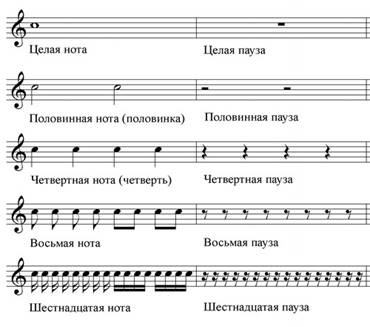 И так далее - иногда встречаются еще более мелкие длительности: тридцать вторая, шестьдесят четвертая, сто двадцать восьмая.