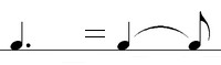 В случае, если длительность, взята на слабой доле и длится следующую относительно сильную долю, то используется залигованная нота, а не нота с точкой.