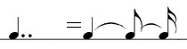 Две точки после ноты обозначают, что нота удлиняется на половину + четверть своей длины.