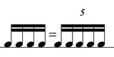 Особый вид ритмического деления - это деление длительности не на два, а на другое количество равных частей. Самые распостраненные варианты: триоль (деление на 3 части) и квинтоль (деление на 5 частей).
