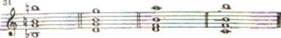 Если принять положение пальцев, необходимое для исполнения того же тетрахорда в качестве исходного и, оставив первый палец на струне Ля, расположить остальные на трех струнах, то, в зависимости от места каждого из них, образуются следующие сочетания: