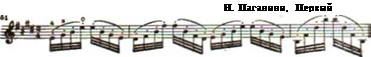 У Л. Ауэра встречается указание на прием одновременной постановки группы пальцев на струну при нисходящих исследованиях хроматических звуков: