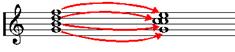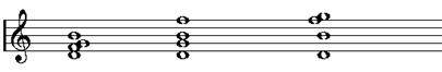 Взаимное расположение всех остальных тонов, помимо нижнего физически, для обращения аккорда не имеет значения. Например, на рисунке - один и тот же доминантовый терцквартаккорд до-мажора: