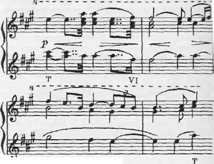 Таким образом, на одном этом примере очевидно, сколь разнообразна и существенна роль гармонии в музыкальном произведении. Из нашего краткого анализа ясно, что в гармонии равно важны две стороны — возникающие звуковые сочетания и их связь между собой.