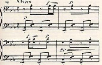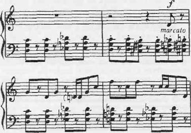 С помощью «лишнего», диссонирующего звука фа образуется веселое, дразнящее созвучие, так отвечающее задорному и слегка шутливому характеру пьесы.