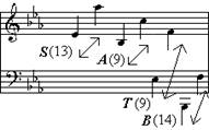 Альты – плавная мелодическая линия, но встречаются и скачки (на кварту).