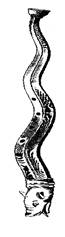 Особливий різновид труби – серпан (serpen) – є прототипом для багатьох сучасних духових інструментів. [Рис.3.8] Музикант тримав інструмент обома руками, причому ліва рука тримала вигнуту частину, а пальці правої руки перебирали отвори, що зроблені на верхній частині серпану. Звук у серпана був міцний, цей духовий інструмент використовувався як у військових оркестрах, так і на церковних богослужіннях.