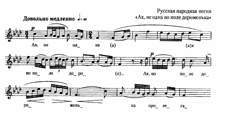 1. Октавно повторенные звуки являются различными по своей ладовой функции, своей направленности и тяготению. Как правило, в этих случаях октавно повторяется не весь звукоряд полностью, а лишь несколько его тонов. Например, в песне "Не одна во поле дороженька" (см. Приложение № 1) звук фа1 является главным устоем: он притягивает к себе все остальные тоны и завершает наиболее отчленённые музыкальные фразы и строфу в целом. Звук фа2 является неустоем: он ни разу не завершает фразы, используется преимущественно на слабых долях; он неустойчив и, выполняя функцию опевания тона ми-бемоль, сам через ре-бемоль и си-бемоль направлен в главный устой фа1 .