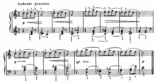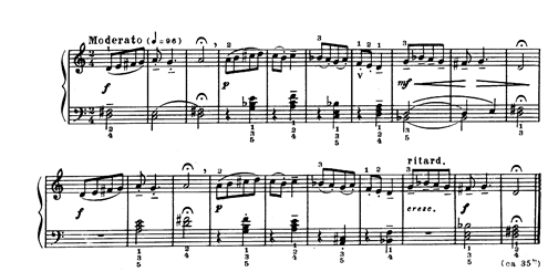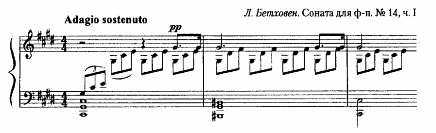В итоге лад стал формироваться как система отношений уже не только тонов, но, прежде всего, как система отношений определённым образом организованных созвучий. Носителем функции в гармонических ладах является не отдельно взятый тон, а целый комплекс тонов, гармоническое единство - аккорд. Отдельные же тоны, сохраняя своё значение в мелодических связях с основным тоном тонического аккорда, в целом подчиняются функции того созвучия, в состав которого они в данный момент входят. Так, например, в основной теме Iчасти "Лунной" сонаты Бетховена (см. Приложение №4) тон соль-диез в мелодии приобретает различную ладовую функцию в зависимости от того, какой гармонией он поддержан. Именно изменение гармонии (то неустойчивой, то устойчивой) заставляет нас воспринять два совершенно одинаковых мелодических мотива не как простой повтор, а как связное вопросно-ответное построение.