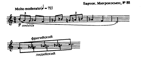 В основе большинства народных мелодий, использованных Бартоком лежат диатонические и пентатонические лады.