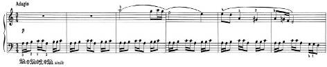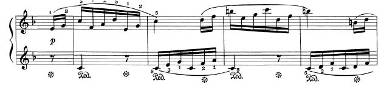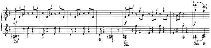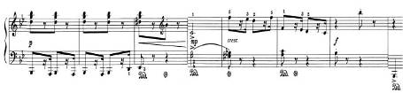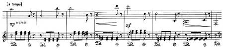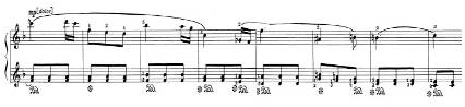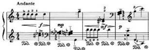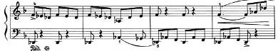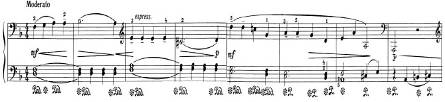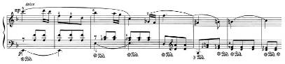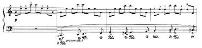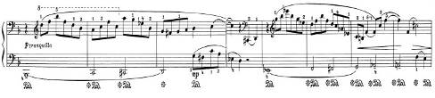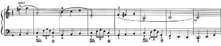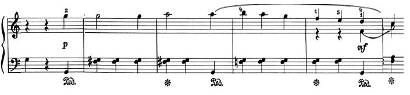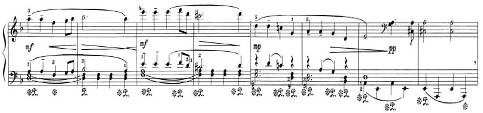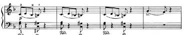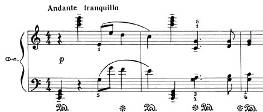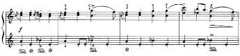 Ровный ритм, носящий характер повествования, сменяется фигурациями полифункциональных аккордов (T и DDVII; SVI и DDVII).