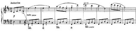 Особую полётность, воздушность мелодии придаёт восходящее движение. Затактовое начало коротких фраз создаёт впечатление кружения, мягкого поворота.