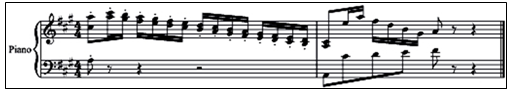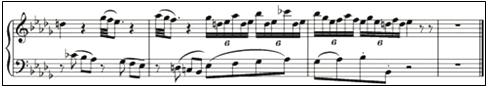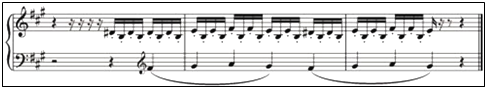 Это создаёт гармоническую "атмосферу" звучания и сохраняет графическую прозрачность сопровождения. Следует остерегаться слияния педалью гармонических фигураций в мелодии, имеющих чисто ритмическое значение.