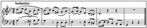 №17. "Andante" d-moll . Соната написана в форме Периода из трёх предложений по 10 тактов.