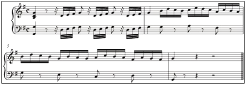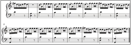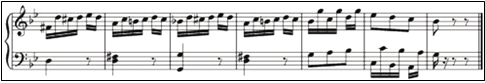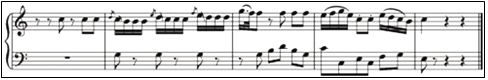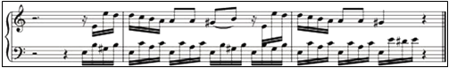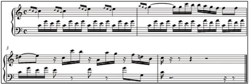 Для итальянской клавирной музыки 18 века также характерна насыщенность большим количеством цезур. Не только на гранях разделов. Но и на гранях партий. И в самих партиях. Тематизм содержит черты множества кадансовых замыканий: он формируется из кадансов и типичных простейших гармонических формул