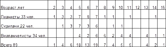 В таблице 2 использованы биографические данные участников 3 Международного конкурса имени П.И.Чайковского (Москва,1966 г.). Из 164 участников приводятся данные о 89.