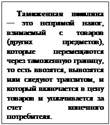 таможенные пошлины. Однако их роль в современных условиях снижается. Они устанавливаются, как правило, лишь для покрытия издержек, связанных с контролем транзита иностранных грузов.