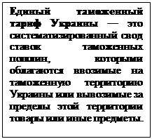 таможенных ввозных и вывозных пошлин дифференцированы и определены Единым таможенным тарифом Украины.