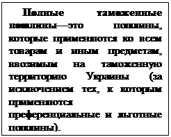 В условиях реформирования экономики Украины таможенныепошлины являются важнейшим инструментом внешнеторговой политики государства в целях ограничения ввоза иностранных товаров, защиты и поощрения развития отечественного производства и стимулирования вывоза национальных товаров.