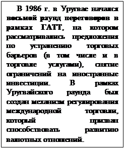 Общемировая тенденция—это снижение таможенных пошлин относительно импортных товаров. Так, по результатам Уругвайского раунда переговоров уровень таможенного обложения был снижен с 6,3% ДО 3,9%.
