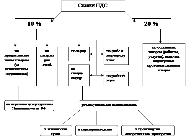 а) 10% - по продовольственным товарам (кроме подакцизных), товарам для детей по перечню, утвержденному Правительством РФ. При реализации для промышленной переработки и промышленного потребления сельскохозяйственной продукции продовольственного назначения, продукции мукомольно-крупяной и пищевых отраслей промышленности (за исключением подакцизной и спирта этилового из пищевого сырья, отпускаемого для выработки ликеро-водочных изделий и винодельческой продукции) расчеты за эту продукцию производятся также с применением ставки налога в размере 10%;