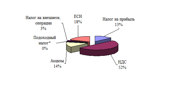 Налоговые поступления - это главный источник формирования доходов бюджетной системы государства: их доля составляет примерно 90% доходов консолидированного бюджета. Из более чем 50 видов налогов всего 4 - НДС, акцизы, налог на прибыль (доход) предприятий и организаций, подоходный налог - обеспечивают более 66% налоговых доходов.
