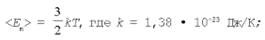 – средняя кинетическая энергия поступательного движения частиц газа связана с абсолютной температурой газа соотношением: