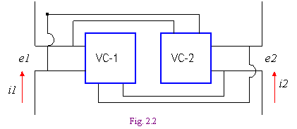 Рассмотрим частный случай электрической цепи с обратимыми преобразователями - т.н. сдвоенную электрическую цепь. Эта цепь состоит из двух простых электрических цепей, соединенных через ОП таким образом, что первичная ветвь каждого ОП включена в первую цепь, а вторичная ветвь - во вторую цепь. Из (3.1-3.4) следуют уравнения сдвоенной электрической цепи: