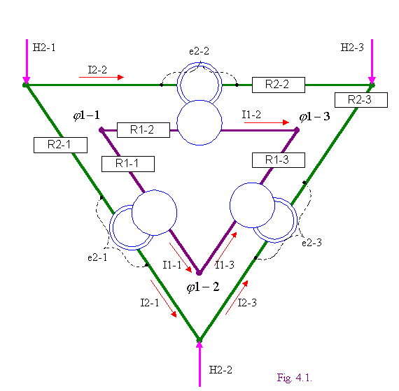 В частности, при , где h - константа (коэффициент преобразования), этот преобразователь является линейным - (ЛОП). В нем токи ветвей зависят от напряжений смежных ветвей следующим образом: