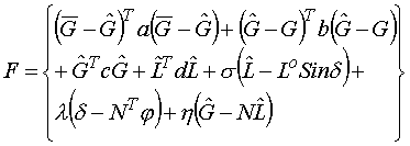 Различные варианты математической нелинейной модели рассматривались в [3, 6, 7]. В данном случае математическая нелинейная модель в целом состоит из уравнений (5.1-5.6) Для решения сформулированной выше задачи воспользуемся методом неопределенных множителей Лагранжа, обозначив их через для условий (5.1, 5.2, 5.3) соответственно. При этом задача превратится в задачу минимизации функции