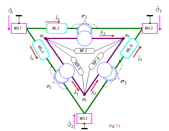 Таким образом, рассматриваемая электрическая цепь моделирует задачу оперативной коррекции. В этой цепи минимизируется функция (6.1) при нелинейных ограничениях (5.4, 5.5), а выполнение условия (5.4) обеспечивает существование глобального минимума этой функции.