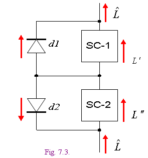 - сопротивление, LT - ограничитель тока. Конструкция ограничителя представлена на фиг. 7.3, где SC1, SC2 -источники тока, d1, d2 - диоды. Этот ограничитель реализует неравенство (5.5).