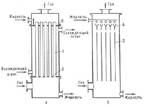 а) одноступенчатый; б) двухступенчатый; 1-трубы; 2-трубныерешётки; 3-камера; 4-патрубки; 5-щели.