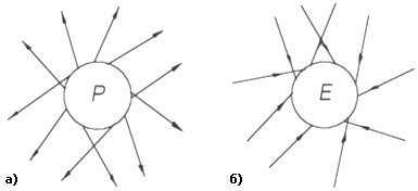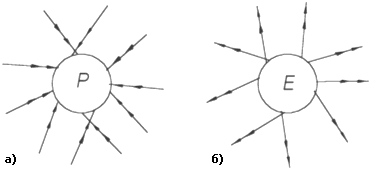 4. Электроны и протоны являются одновременно кажущимися источниками и стоками P- и E-частиц