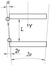 где L – расстояние между нейтральными пластинками. Так как угол α весьма малая величина, то это равенство можно упростить: α=r/L.