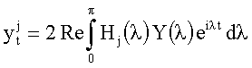 1) Реализацию y(t) подвергнем комплексной модуляции по набору частот ![]()