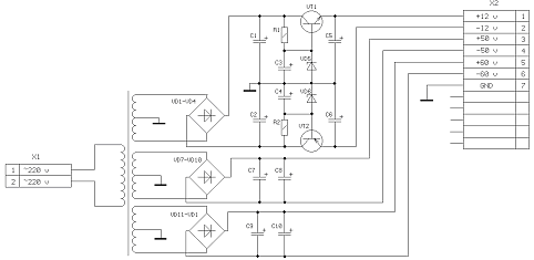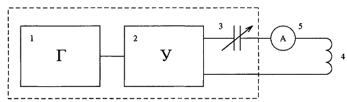 Блок управления состоит из генератора гармонических колебаний с фиксированными частотами, усилителя мощности и батареи конденсаторов (рис. 2).