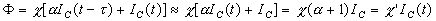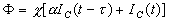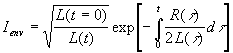 где Ienv огибающая тока и Ioscill безразмерный осциллирующий член. Оба члена выражаются как: