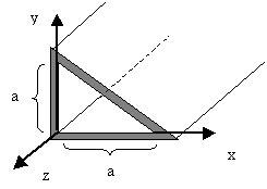 где под L понимается идеально проводящий контур поперечного сечения полого волновода или совокупность контуров в более сложных случаях. В нашем примере, как видно из рисунка, в качестве L выступает прямоугольный равнобедренный треугольник. Применяя для решения этой краевой задачи классический метод Фурье, т.е. представляя искомую функцию в виде: