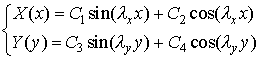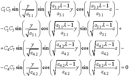Условие по оси х, имеющее вид f(x,0)=0, приводит к уравнению: