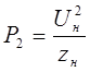 P1 – кажущаяся мощность, которую может отдать генератор на согласованную с ним нагрузку. Величины Р1 и Р2 связаны с величиной ЭДС генератора Е и напряжением на нагрузке Uн известными соотношениями: