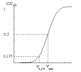 В остальном расчеты ничем не отличаются от общепринятых (см. Расчеты в хроматографии). Однако проще делать расчеты, пользуясь фронтальным методом хроматографии, благо техника экстракционной хроматографии позволяет это сделать. Для фронтальной кривой число теоретических тарелок рассчитывается по следующей формуле [1,2]: