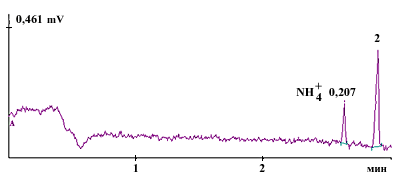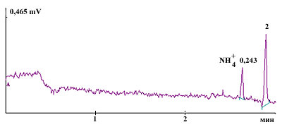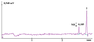 Результаты измерений аммонийного азота в питьевых и природных водах методом капиллярного электрофореза по сравнению с результатами измерений методом фотометрического определения с использованием реактива Несслера практически всегда показывают в 1,5:2 раза меньшее массовое содержание аммонийного азота. Это обусловлено тем обстоятельством, что с реактивом Несслера взаимодействуют не только ионы аммония, но, также амины, хлорамины, ацетон, альдегиды, сульфиды и.т.д., а это приводит к искажению результатов при использовании фотометрической методики.