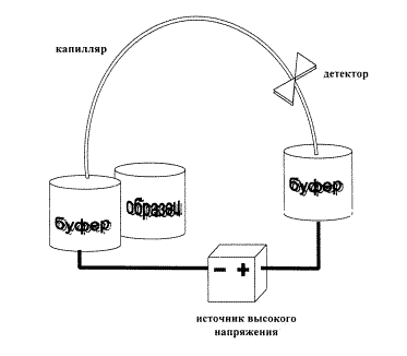 | Рис. 4. Схема системы капиллярного электрофореза |