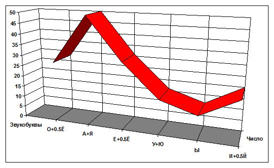 Как видим, звуков А и Я в обычной речи должно было бы встретиться 116 на тысячу, а в стихотворении их гораздо больше
