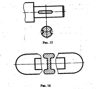 Винты, болты, крепёжные гайки и шайбы, заклёпки, шпонки, не пустотелые валы и шпиндели, шатуны, рукоятки показывают на сборочных чертежах не рассеченными, если разрез оказывается продольным.